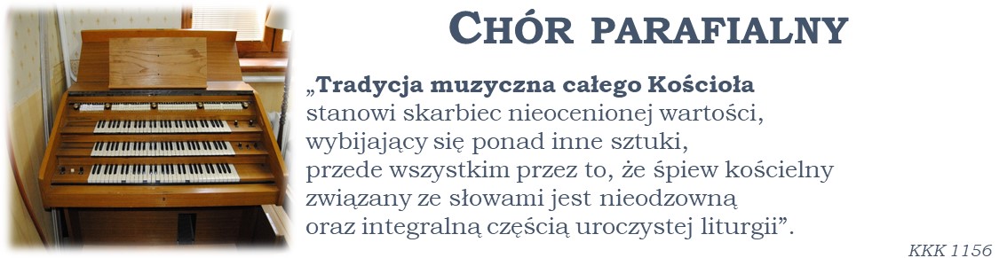 Parafialny chór mieszany tworzą dorośli i młodzież. Przygotowujemy repertuar utworów religijnych na cały rok liturgiczny, aby śpiewem ubogacać liturgię niedzielnej Mszy Świętej, święta kościelne oraz ważne wydarzenia w parafii.