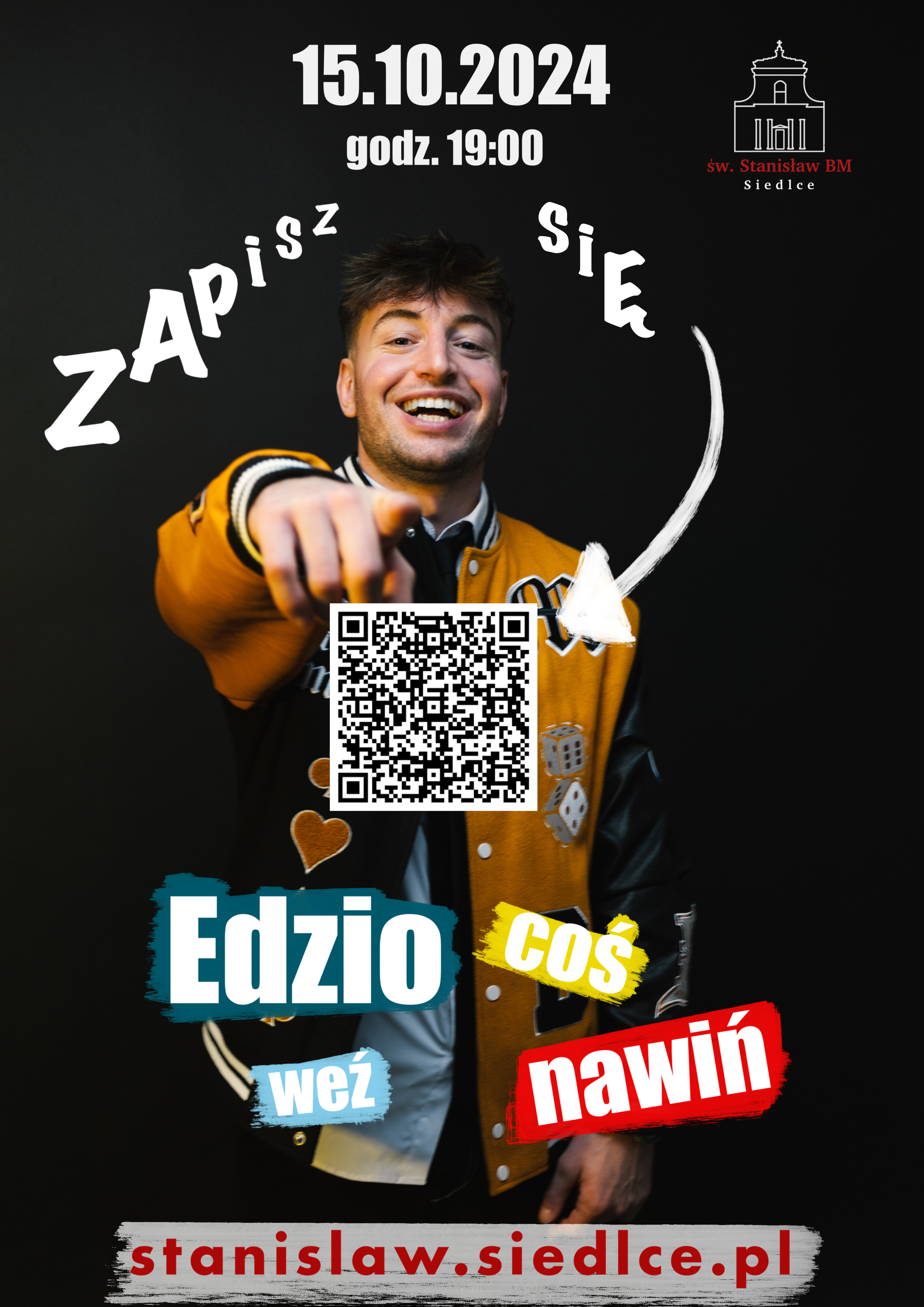 W dniu 15. października 2024 r. w naszej parafii odbędzie się spotkanie z Edziem Rap. Zapraszamy wszystkich młodych (i nie tylko) na to wydarzenie! We wtorek o godz. 17.15 różaniec, o godz. 18:00 Msza św. a o godzienie 19:00 spotkanie z Edziem!