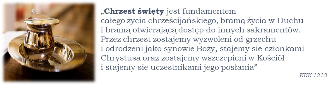 - jeśli chrzestni mieszkają na terenie naszej parafii – zaświadczenie o odbytych Katechezach.