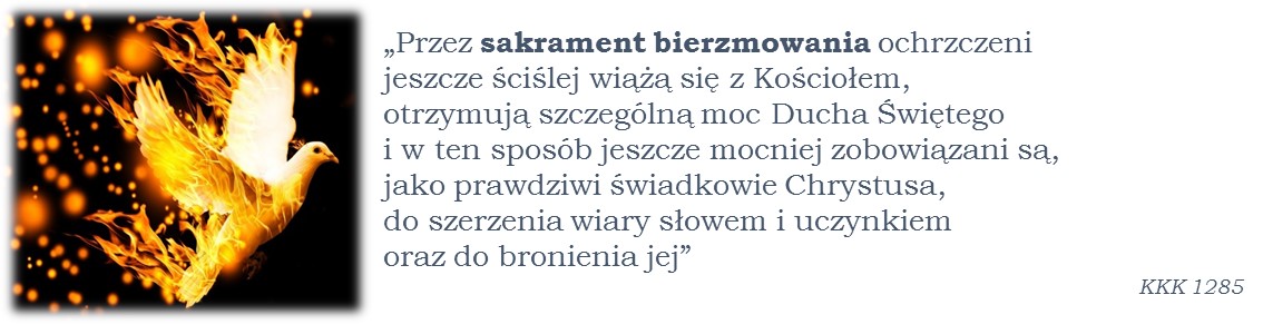 - Kandydat powinien wykazać się znajomością pytań katechizmowych, pacierza oraz wiedzą na temat bierzmowania.